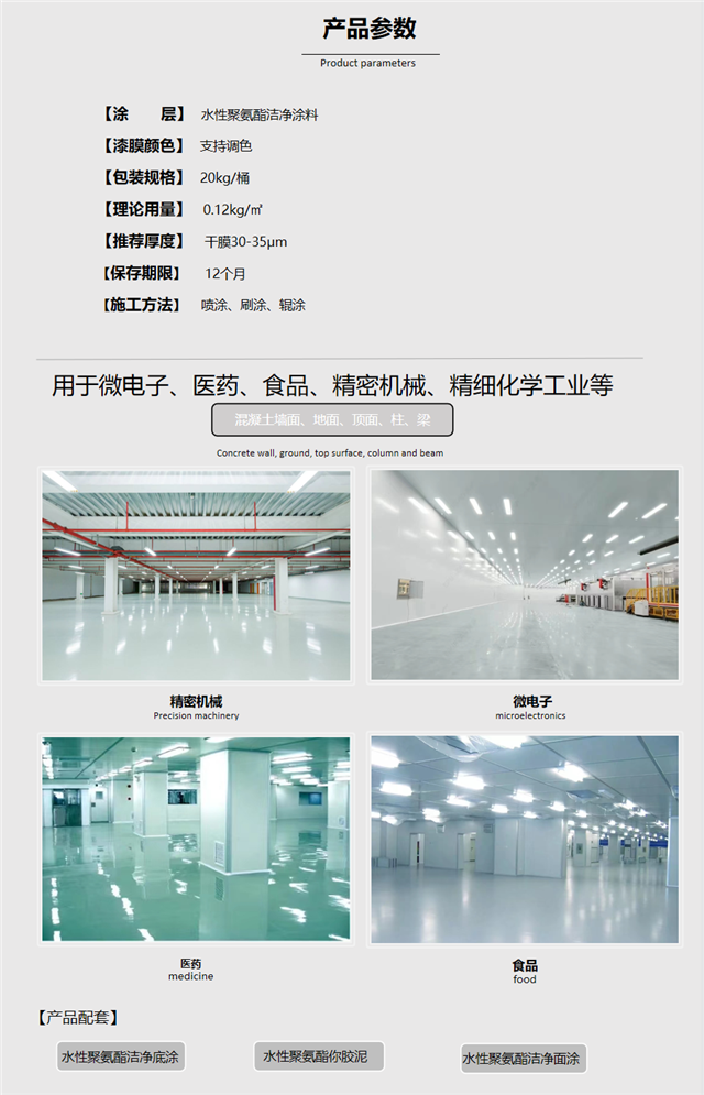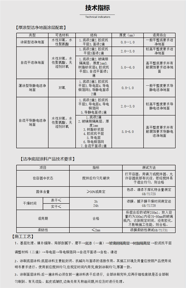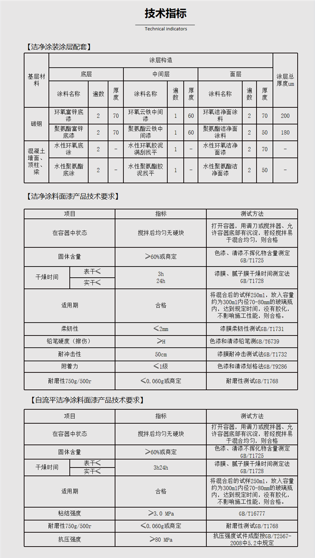 水泥砂漿、混凝土、木材等基層宜選用環(huán)保型水性聚氨酯潔凈涂料、水性環(huán)氧潔凈涂料、無(wú)溶劑環(huán)氧潔凈涂料