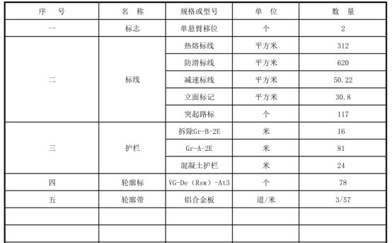 隧 道 護(hù) 欄 材 料 數(shù) 量 表