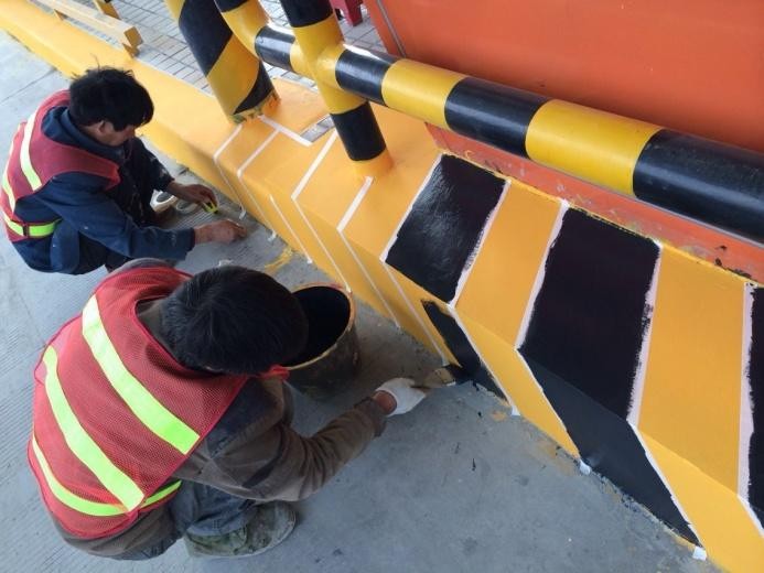 第九道工序:在涂刷好的黃黑標線涂料上涂刷高光罩面層。