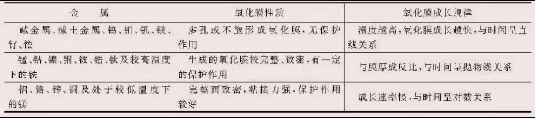 普遍金屬空氣氧化膜的特性及成才規(guī)律性